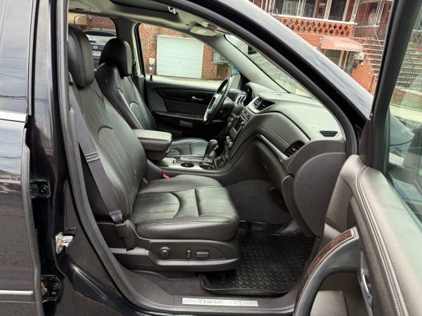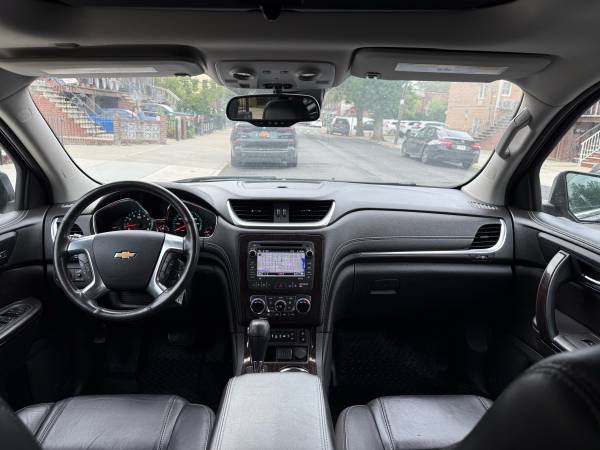 I am selling a Mint condition 2015 Chevrolet Traverse LTZ AWD 7-passenger fully loaded suv. Runs and drives perfect. No issues at all. Super clean inside and out. Loaded up with leather, heated/cooling seats, power trunk, Bluetooth, back up camera, dual sunroof, captain seats, navigation. Comes with safety features including blind spot monitors, collision warning and parking sensors. Everything works perfect. Ice cold a/c. Has 189K miles on it all highway driven. Very well maintained and serviced Chevy truck. Clean title in hand. Contact me or serious and ready to buy. Price is $5900. Call or txt me at show contact info