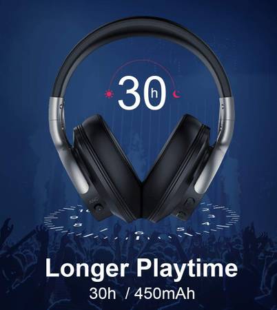 Listen to music for hours-do you want to use your noise cancelling headphones without having to deal with annoying wires? Then activate the advanced Bluetooth with the ultra-low power consumption and wear the adjustable headphones. But remember! First, you need to change the built-in 400mAh rechargeable battery for about two hours. It can last up to 30 hours once fully charged. Try them out and see for yourself!