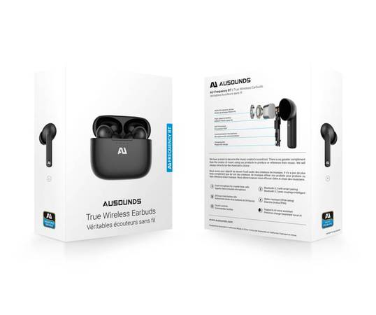 Ausounds Frequency Bluetooth 5.2 True Wireless Earbuds, 10mm Hi-Fi Driver, Water Resistant for Workouts for iPhone and Android - Black