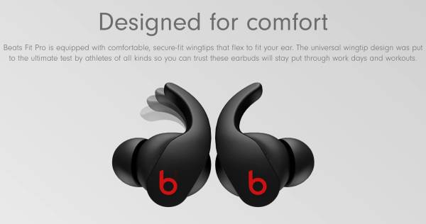 Beats Fit Pro is equipped with comfortable, secure-fit wingtips that flex to fit your ear. The universal wingtip design was put to the ultimate test by athletes of all kinds so you can trust these earbuds will stay put through work days and workouts. Complete with pressure relieving vents, you can comfortably wear these earbuds all day long.