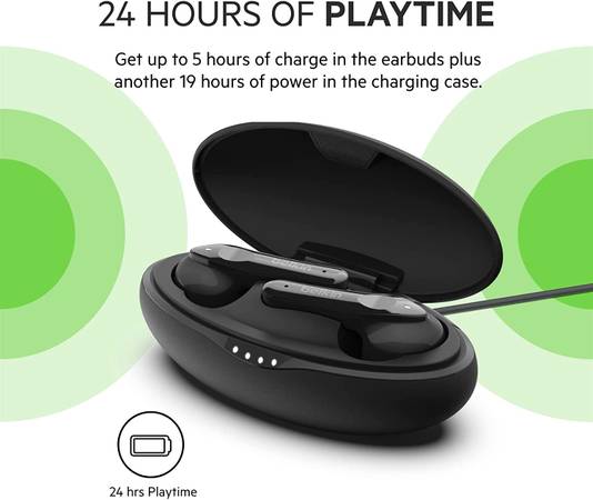 RECHARGE ON-THE-GO: With up to 5 hours of playtime per charge, plus another 19 hours in the case, you’ll never be without all-day power for your earbuds (wireless charger not included)