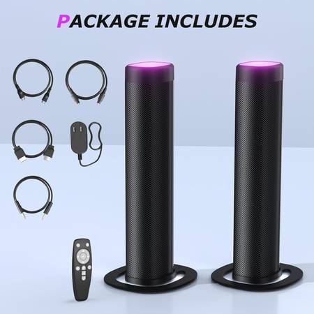 【Versatile Mounting Options】Place the 2-IN-1 sound bar horizontally beneath your TV for a sleek look, stand it upright as dual stereo speakers, or mount it to the wall with the included hardware—flexibility to fit your space. Its modern design blends into any decoration, whether in the living room, bedroom, dorm, or gaming station. Save space without compromising on sound quality, style, or performance. A perfect fit for both compact and spacious setups.