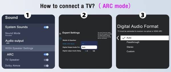 Note: When connecting the audio system and the TV, you need to operate them at the same time. The selected connection cable and the audio system must be set to the same mode, otherwise it will not work. Please refer to the manual for details.