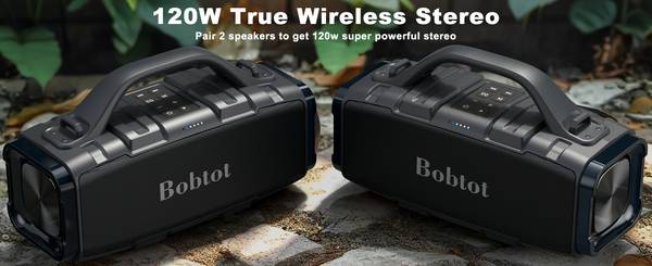 True Wireless Stereo: Bluetooth 5.3 ensures a faster and more stable connection up to 100ft compared to others. TWS function allows you to pair 2 speakers to get stereo sound at 120W peak power. When you play music, watch movies, or play games, this wireless speaker with bluetooth can bring you larger sound space, clear vocals, deep bass, and crisp highs. Perfect for music enthusiasts who want a dynamic and immersive listening experience.