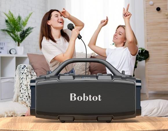 Bobtot ET310C Portable Bluetooth Speaker, 60W Peak IPX6 Waterproof, Outdoor Speaker with Handle Stereo Loud Sound, Deep Bass, 8800mAh Battery, TWS/TF/AUX/EQ Outdoor for Party Beach Camping, Black