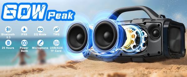 60W Powerful Stereo Speaker: Unleash the ultimate audio experience with our 60W bluetooth speaker. Featuring two 3.5” full-range drivers and dual passive radiators, it delivers a perfect blend of punchy bass, crystal-clear treble, and immersive midrange tones. With true stereo sound separation, you’ll hear every detail—whether it’s the beat drop in your favorite track or the dialogue in a blockbuster movie. Thanks to advanced audio tuning, every note is loud, clear, and distortion-free, making this speaker your go-to for any occasion.