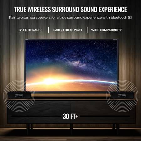 True Wireless Surround Sound for Immersive Audio: With True Wireless Stereo (TWS) technology, you can connect two Samba speakers for a true surround sound experience. Get lost in the music with room-filling sound that creates a 360-degree concert-like atmosphere, perfect for gatherings, parties, and outdoor adventures.