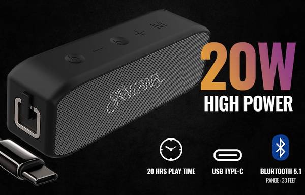 High-Power Audio Performance: Experience the powerful 20-watt output of the SANTANA BY CARLOS SANTANA Samba speaker, equipped with 48mm drivers for dynamic sound. Whether you're indoors or outdoors, enjoy deep bass and crystal-clear treble for a complete audio experience that fills any space.