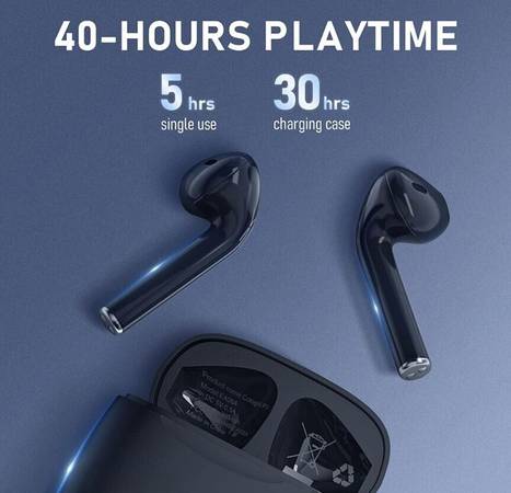 Up to 20 - 40 Hours Play Time -20 hours of playing music when two earbuds are used together with max volume. It has up to 40 hours of playtime when a single earbud is used. (Needing to use the charging case to charge, a fully charged earbud can be used for 5 hours with max volume.)
