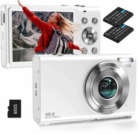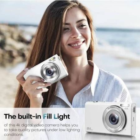 Digital Camera, AutofocusUHD 4 VIooging Camera with 32GBCard, 48M16X DigitalZoom Digital Camera, Anti-Shake Portable YouTube Compact Point Shoot Camera for Teens Adult Beginner (White)