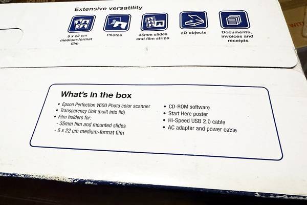Here is the Best in class Epson Perfection V600 Photo Scanner. Brand new, sealed box, unopened. Original packaging the same as in a retail store.