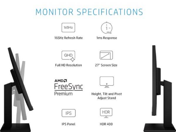 HP X27q 27-inch QHD Gaming Monitor with Tilt/Height Adjustment -...