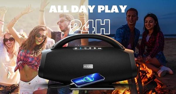 All-Day Playtime & Fast Charging & Power Bank: Whether it's a day at the beach, a hiking trip, or a picnic, the 24-hour playtime makes the party bluetooth speaker a perfect companion for extended outdoor activities. The speaker features the fast charge function (Supports up to 60W fast charging, about 3 hours), providing convenience, flexibility lifestye. The power bank function transforms the speaker into an emergency power source to charge your mobile devices, such as smartphones or tablets