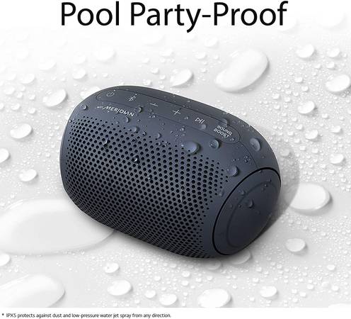 Pool party-proof. Keep jamming without the worry of water hitting your speaker. The water-resistant* LG XBOOM Go is a speaker built to play in less-than-perfect conditions. So the music never has to stop.