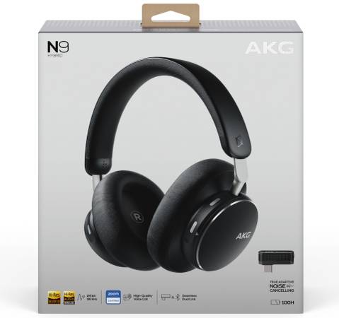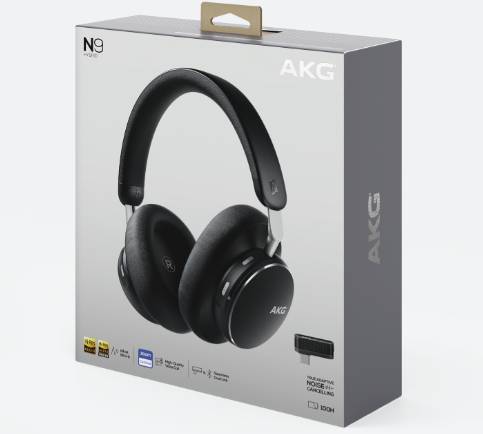 AKG N9 Hybrid Wireless Over-Ear Noise Cancelling Headphones, 2.4GHz USB-C dongle and BT, Hi-Res Quality AKG Sound, True Adaptive Noise Cancelling, Zoom Certified Superior Call Quality, Black