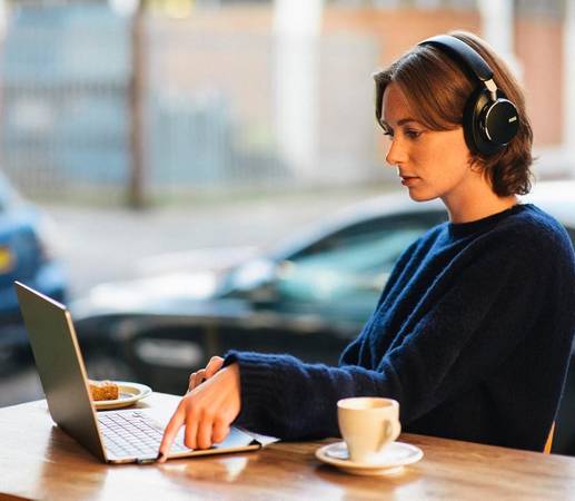 When it's time to reach your most creative mental space, just put on your AKG N9 Hybrid over-ear headphones. Featuring AKG Reference Sound, Hi-Res Audio both in wireless and wired mode, and True Adaptive Noise Cancelling, they envelop you in immersive spatial audio, pulling you into your flow so you can find your creative focus even in the noisiest work environment. The 2.4GHz USB-C dongle connects seamlessly with any device via Bluetooth®, and fits elegantly inside the left earcup when it's not in use. When it's time for a conference, four virtual adaptive beamforming microphones cancel out all the noise while picking up every nuance of your voice, whether you're working remotely or in an office setting. Plus, the AKG N9 Hybrid are Zoom-certified. The ultra-lightweight band and cushioned PU leather earcups are comfortable enough to let you enjoy heightened clarity and pure, undistorted sound all day, every day. And with 100 hours of playtime*, you'll get through an entire work week before you need to recharge.