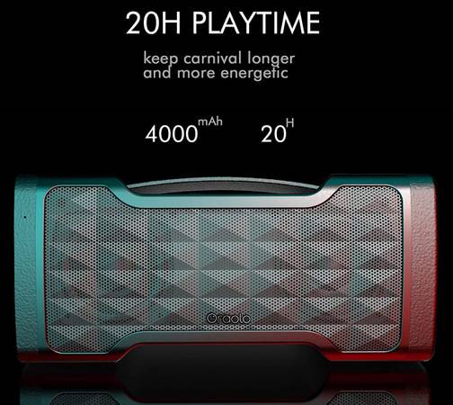 20 Hours Playtime: What we want is to make the party longer. Oraolo M91 Bluetooth speaker is built with a 4000mAh battery, this lower power consumption enable you enjoy music for up to 20 hours on a single charge.