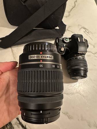 Pentax K-X DSLR including 2 zoom lenses and camera bag. Works great, no damage. Was in storage and hasn't been used in the last 15 years. Pickup only, OBO.