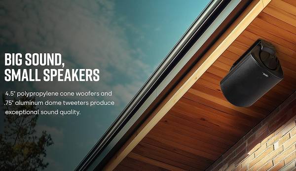 CONNECTIVITY - Features gold-plated 5-way binding posts for secure connection to any modern AVR or amplifier. Ideal for small to medium outdoor areas including patios, pools, and sunrooms