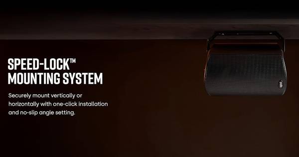 MOUNTING SYSTEM - Speed-Lock mounting bracket provides one-handed installation capability. Mount speakers vertically or horizontally for optimal sound positioning in your outdoor space