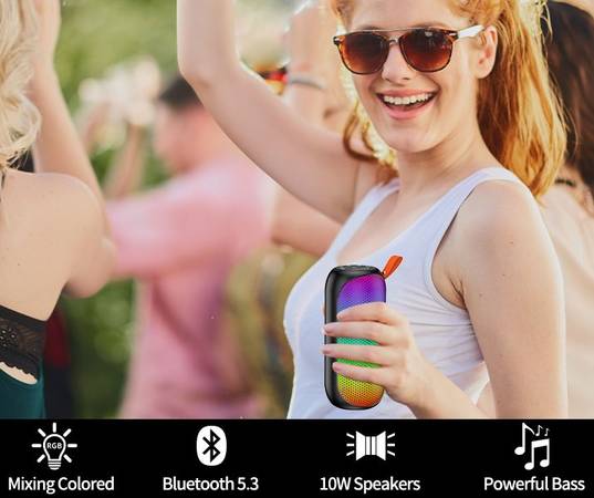 RGB Light Show: Portable Bluetooth speaker has RGB lights that react to the tunes for a unique immersive party atmosphere and audio experience. Mixed color flashes that sync with the beat, create a pulsing light show for any song, and keep the party going with streaming music in HD.