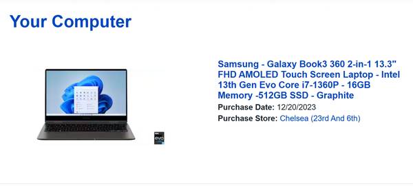 Bought on 12/20/2023 as a backup laptop ($800+tax originally), haven't been used much since (less than 20 charge cycles)