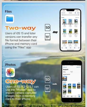 SD Card Reader for iPhone & USB C, Memory Card Veiwer Support SD and TF Card, USB Digital Camera Adapter for Lightning & Type-C Devices Compatible with iPhone 16 15 14 13 12 11 and More