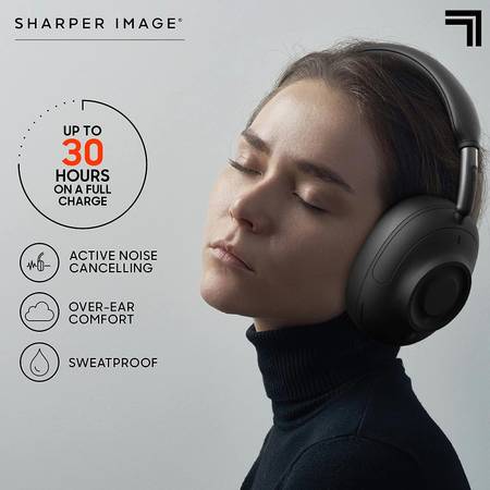 Sharper Image Soundhaven Wireless Over-Ear Bluetooth Headphones, Active Noise Canceling, 30-Hour Playtime, IPX4 Sweatproof, Music & Call Touch Controls, Connect to 2 Devices, Premium Audio Drivers - Black - Style 1014697