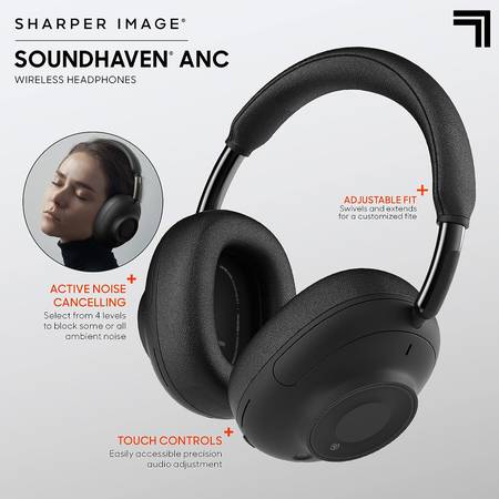 The Sharper Image SoundHaven Wireless Headphones use premium drivers and active noise canceling to provide a crystal-clear audio experience for the user. The extended 35-hour battery life on a single charge ensures the headphones will meet all your music and audio needs.