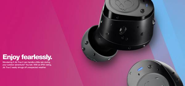 Wondering if Jib True 2 can handle a little rain during your outdoor adventure? You bet. With an IPX4 rating, Jib True 2 easily shrugs off unexpected weather.