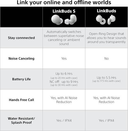 With LinkBuds S, you're always connected. Wear them comfortably around the clock, staying in touch with people and places without having to pause your playlist. When you are ready to tune out the noise, LinkBuds S offer premium noise canceling to help you focus on your favorite playlist or podcast.