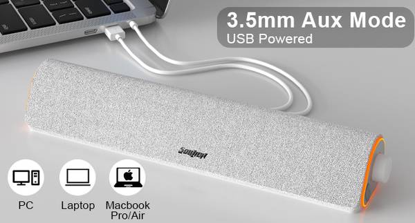 SOULION R50 Bluetooth Computer Speakers, 3.5mm PC Sound Bar for Desktop Monitor, Wired USB Powered & Colorful LED Lights with Switch Button, Surround Sound Soundbar PC Speakers for Computer - White