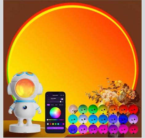 Sunset Lamp Projector with APP & Button Control,360° Magnetic Adjustable Head RGB Multicolor Changing LED Mood Light,Astronaut Sunlight Lamp for Bedroom, Photography,Party,TikTok Live,Room Decor