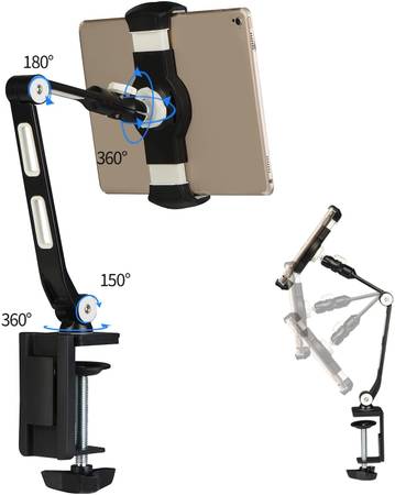 suptek Aluminum Tablet Desk Mount Stand 360° Flexible Cell Phone Holder for iPad, iPhone, Samsung, Asus and More 4.7-11 inch Devices