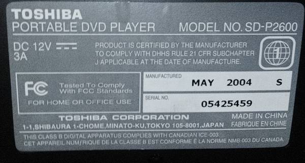Toshiba Portable DVD Player 8.9"- Silver (SD-P2600).