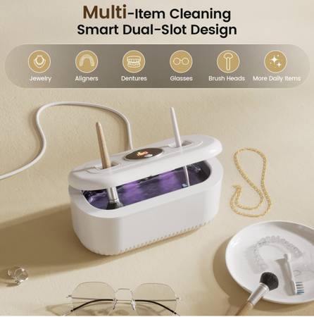 30W power and 48kHz high-frequency ultrasonic waves, jewelry cleaner generates microscopic cavitation bubbles that penetrate into crevices, removing dirt and oil from rings, glasses, dentures, earrings, and more.