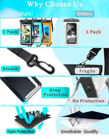 Universal Waterproof Phone Pouch 3 Pack, IPX8 Phone Water Protector Pouch Case Bag with Lanyard Compatible iPhone 14 13 12 Pro Max, Waterproof Phone Holder Phone Protector for Water Beach Swimming
