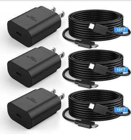 USB C Charger,Super Fast Charger Type C,3 Pack 25W Type C Charger Fast Charging Block with 10FT Long Type C to C Cable for Galaxy S23 Ultra/S23/S23+/S22/S22 Ultra/S22+/S21/S20/Note 10/20,Z Fold/Flip