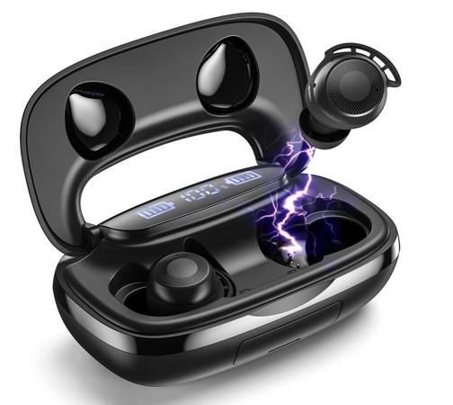 100H Long-lasting Playtime: The 2000 mAh earphones charging case can be used for 100 hours, and the waterproof headphones can be used for 5 hours on a single charge. You can also use the charging case as an emergency charging device.