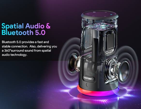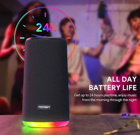 Votomy VT-350 30W Pick Wireless Bluetooth Speaker, IPX7 Waterproof, 24H Playtime, 360°Surround Sound with 6 Ambient RGB Lights Party Speaker, Portable Wireless Speaker for Outdoors, Travel
