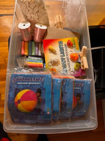 Hello I’m selling a bin of unused party supplies. Can be used for a kids party or whatever you want it for . More items not shown in pictures. Asking $10