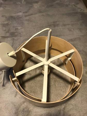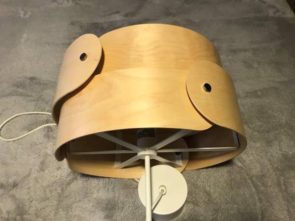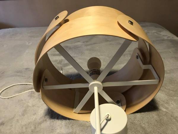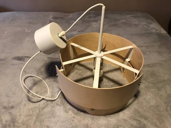 Brand New "Sodakra" Birch Pendant lamp, this lamp shade gives a Pleasant atmosphere for dinning or bar table, Hardwired Installation [Does NOT come with power-cord], ,Each pendant lamp is unique since it is made of natural Birch material, great anywhere in your home, Light bulb included, measures:19"Height x 18"Shade diameter. Great Deal.