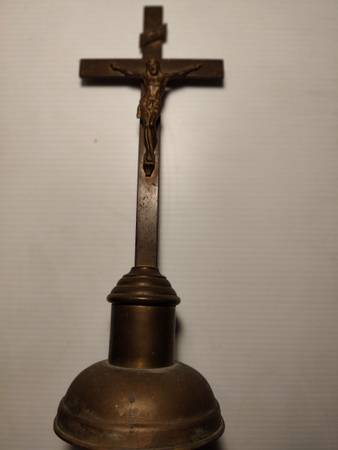 Solid brass Statue of Jesus on the Cross with tall pedestal holding it high. Total height is 12 1/2". Ideal for Christmas.