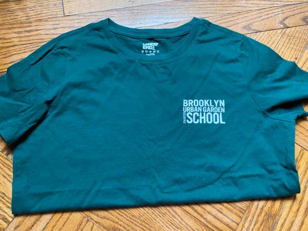 New dark evergreen uniform T-shirt with BUGS logo Youth XXL Measures 19.5 across chest (armpit to armpit)