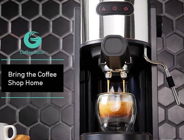 Coffee Gator Espresso Machine, Quick-Brew Espresso Maker with Milk Frother & 1.3 Liter Removable Water Tank