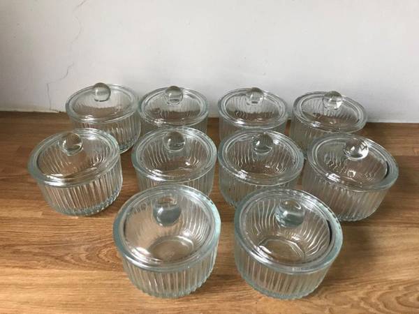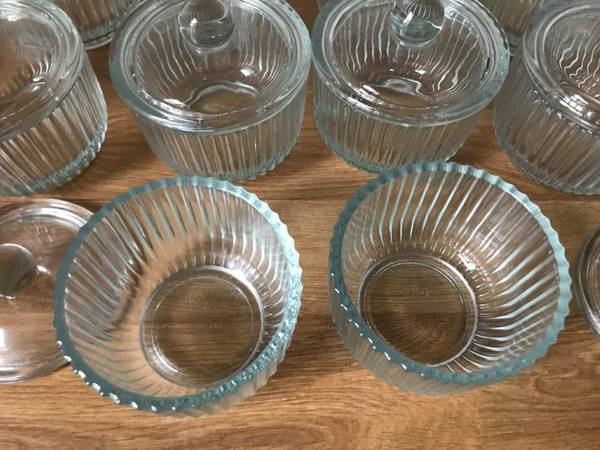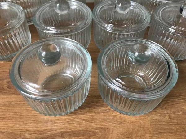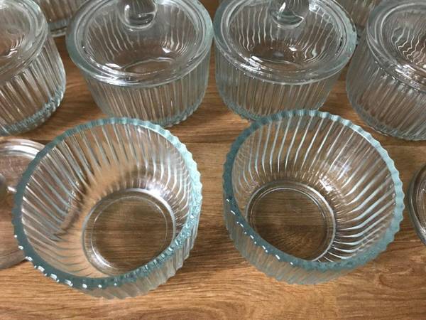 Brand New "Set of 10" Crystal Covered boxes with lids, can be used for spices, Art, collector coins etc..., Crystal boxes Measure: 3 1/2"Diameter x 3 1/4" Height. These Crystal Boxes have Amazing and elegant "Waves" engraved on the entire body of the Box, Great Design