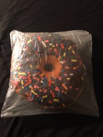 Add a little fun to your life with this donut shaped pillow from 2 Scoops!