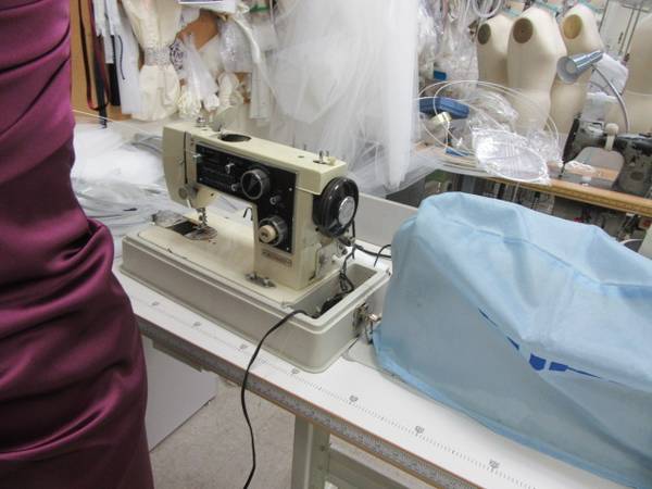 LARGE ALTERATIONS DEPARTMENT INCLUDING 4 JUKI DDL 8700 MACHINES, 2 JUKI DDL 555 MACHINES, MERROW STITCH MACHINES, SINGER STRAIGHT NEEDLE MACHINES, STEAM IRONS, GARMENT STEAMERS, 10 DRESS FORMS, TREMENDOUS QUANTITY DRESSMAKING SUPPLIES, RIBBONS, LACE FINE FABRICS, MUCH MORE.