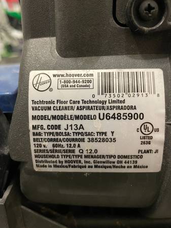 I am selling a Hoover WindTunnel Upright Vacuum Cleaner, Model U6485900 in good condition. This vacuum works well. Just replace the bag and the filters and it works like new still. It is great for heavy carpets and regular floors. The vacuum comes with one new bag in the box. See the pictures for the exact condition, and what is included. Check out my other ads, you may find other stuff you need. I am posting new stuff everyday. This vacuum is sold as is. No refunds.