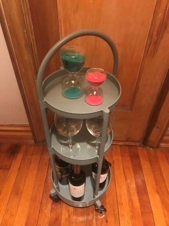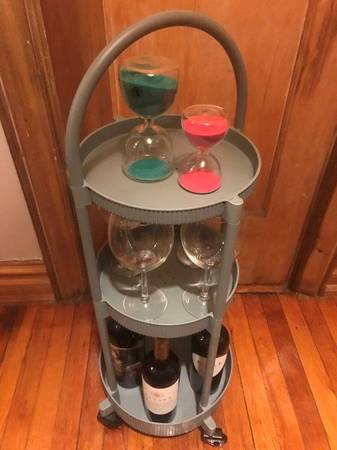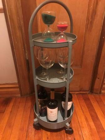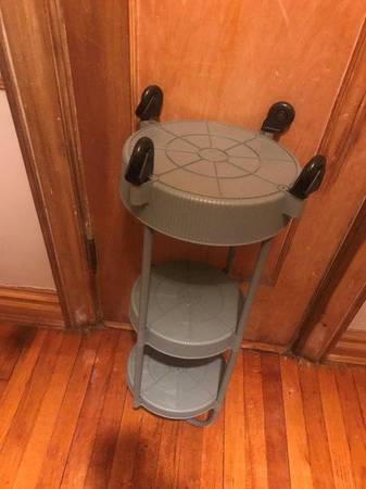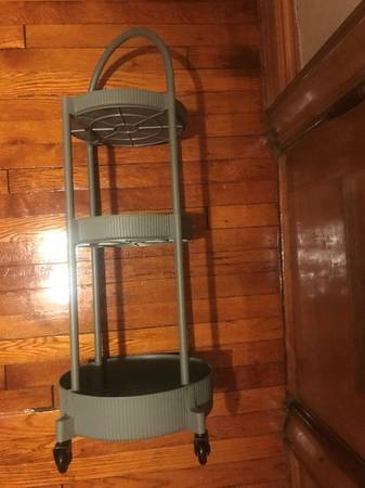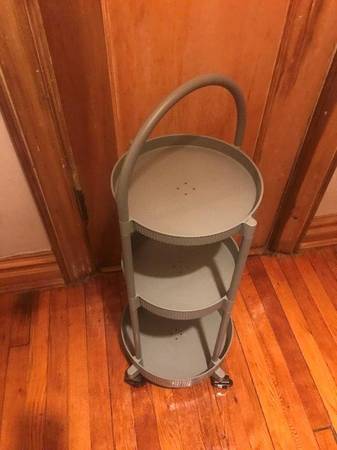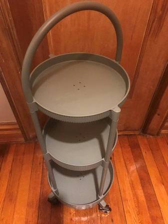 Brand New Ikea "Juttersbo" Gray-Green Plastic utility cart with Black wheels, A perfect storage solution for your Children accessories, Kitchen or Office usage that you can roll wherever you like. Utility cart measures:27"Height x 12"Diameter, Easy to roll under the dining table, Kitchen or your desk, Great additional Design for storage anywhere in your Home.